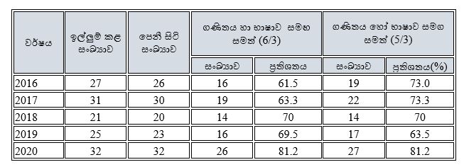 සා/පෙළ ප්රතිපල විශ්ලේශනය (ආසන්න වසර 5 ක)